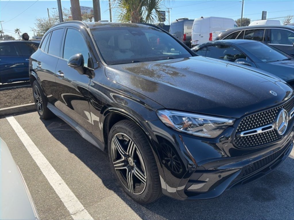 Recent Arrival! Certified. Black 2025 Mercedes-Benz GLC 300 RWD 9-Speed Automatic I4 APPLE CAR PLAY, ANDROID AUTO, USB PORTS, BLUETOOTH, Alloy wheels, AMG® Line, AMG® Line Body Styling, AMG® Line Exterior, AMG® Line Floor Mats, AMG® Line Interior, Black Roof Rails, Burmester® 3D Surround Sound System, Enhanced Ambient Lighting, Exclusive Trim, Flat-Bottom Multifunction Sport Steering Wheel, GUARD 360, High-Gloss Black Elements, Illuminated Door Sills, MB Navigation, MB-Tex Instrument Panel, Night Package, Perforated Brake Discs, Surround View System, Wheel Arch Trim Painted in Body Color, Wheels: 20" AMG® 5-Spoke w/Black Accents.