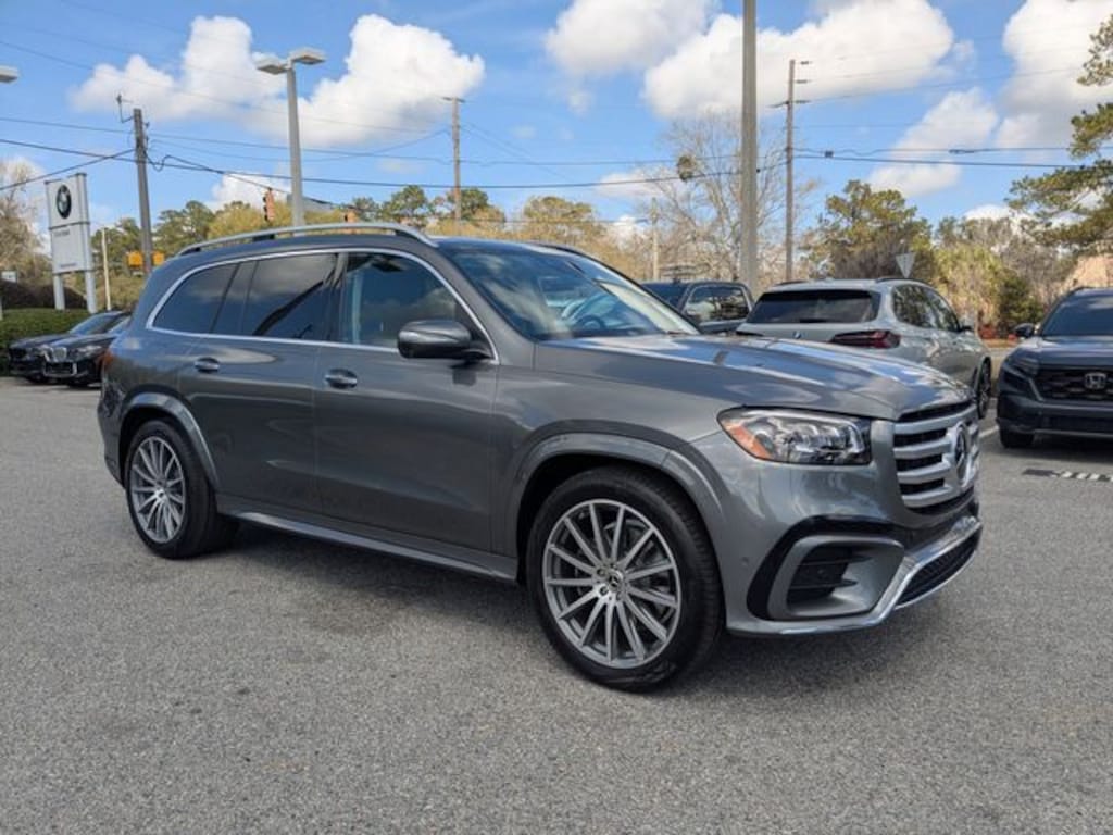 Clean CARFAX. Certified. Selenite Grey Metallic 2025 Mercedes-Benz GLS 450 4MATIC® 4MATIC® 4MATIC® 9-Speed Automatic 3.0L I6 APPLE CAR PLAY, ANDROID AUTO, USB PORTS, BLUETOOTH, Alloy wheels, AMG® Bodystyling, AMG® Brushed Stainless Steel Sports Pedals, AMG® Floor Mats, AMG® Line Exterior, AMG® Rear Apron, AMG® Side Skirts in Body Color, AMG® Sport 3-Twin-Spoke Steering Wheel, Apple CarPlay®/Android Auto®, Front and Rear Flared Wheel Arches in Body Color, Large Front Brake System, Navigation system: MB Navigation, Wheels: 22" AMG® Multi-Spoke Alloy.