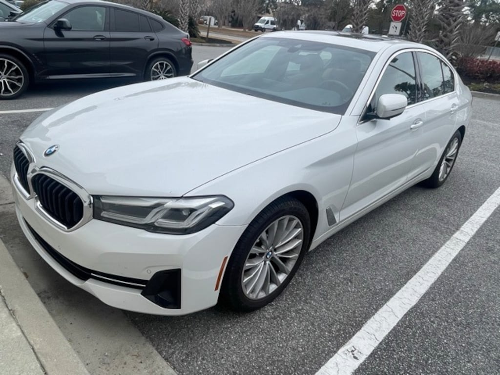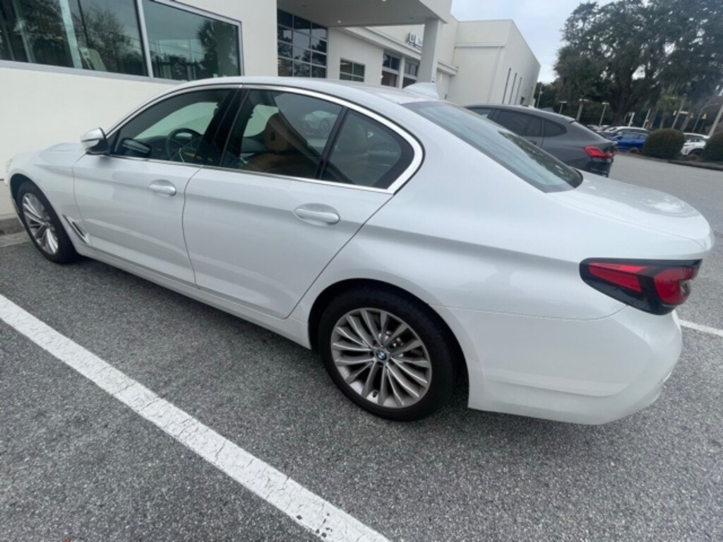 Clean CARFAX. CARFAX One-Owner. Recent Arrival! Certified. White Metallic 2023 BMW 5 Series 530i RWD 8-Speed Automatic Sport 2.0L 4-Cylinder APPLE CAR PLAY, ANDROID AUTO, USB PORTS, BLUETOOTH, Cognac Artificial Leather, Alloy wheels, Connected Package Pro, Convenience Package, Heated Front Seats, Navigation System, Power moonroof, Power Tailgate, Wheels: 18" x 8" W-Spoke Reflex Silver.