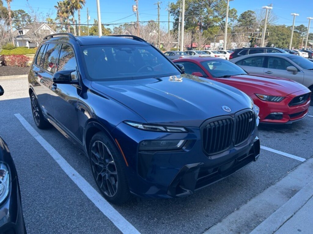 CARFAX One-Owner. Recent Arrival! Certified. Tanzanite Blue II Metallic 2023 BMW X7 M60i AWD 8-Speed Automatic Sport 4.4L V8 DOHC 32V APPLE CAR PLAY, ANDROID AUTO, USB PORTS, BLUETOOTH, 2nd Row Captain's Chairs, 5-Zone Automatic Climate Control, Active Driving Assistant Pro, Alloy wheels, Bowers & Wilkins Diamond Surround Sound System, Climate Comfort Package, Connected Package Pro, Driving Assistance Professional Package, Executive Package (DISC), Extended Shadowline Trim, Front & Rear Heated Seats, Front Massaging Seats, Front Ventilated Seats, Glass Controls, Heads-Up Display, Heated & Cooled Cup Holders, M Sport Brakes w/Black Calipers, M Sport Package Pro, M Sport Professional Package, Navigation system: BMW Maps Navigation, Panoramic Sky Lounge LED Roof, Wheels: 22" x 9.5" Fr & 22" x 10.5" Rr Double-Spoke.