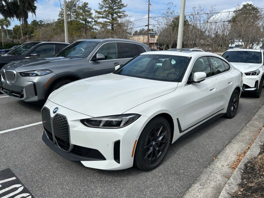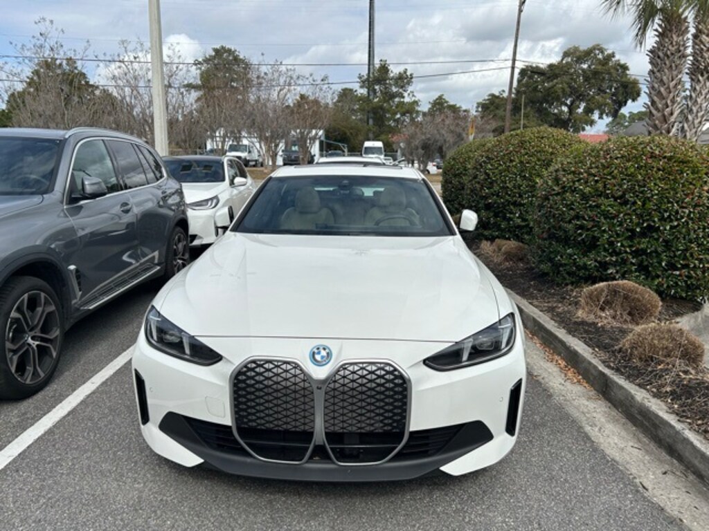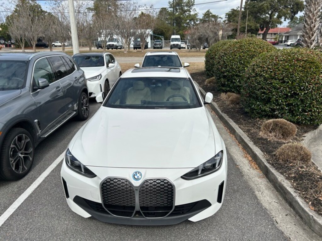 Clean CARFAX. CARFAX One-Owner. Recent Arrival! Certified. Alpine White 2025 BMW i4 eDrive40 RWD Single-Speed Automatic Electric Motor APPLE CAR PLAY, ANDROID AUTO, USB PORTS, BLUETOOTH, Active Park Distance Control, Alloy wheels, BMW Curved Display w/HUD, Connected Package Pro, harman/kardon Surround Sound System, Heated Steering Wheel, Iconic Sounds Electric, Navigation, Navigation system: BMW Maps Navigation, Parking Assistance Package, Parking Assistant Plus, Parking View w/3D View (Surround View), Premium Package, Rear-View Camera, Wheels: 18" x 7.5" Aero Gunmetal Grey.