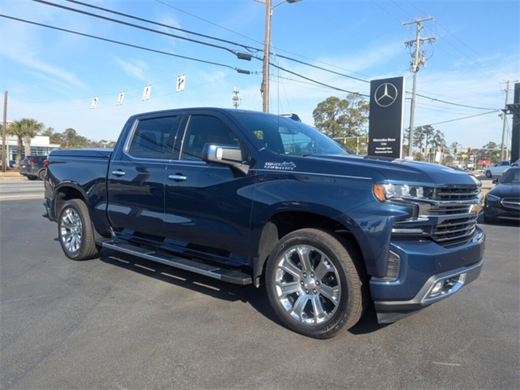 CARFAX One-Owner. Northsky Blue Metallic 2019 Chevrolet Silverado 1500 High Country 4WD 10-Speed Automatic EcoTec3 6.2L V8 APPLE CAR PLAY, ANDROID AUTO, USB PORTS, BLUETOOTH, 10-Speed Automatic, 4WD, Jet Black Leather, 10-Way Power Driver Seat w/Lumbar, 10-Way Power Passenger Seat Adjuster w/Lumbar, 12-Volt Rear Auxiliary Power Outlet, 120-Volt Instrument Panel Power Outlet, 170 Amp Alternator, 2nd Row Heated Outboard Seats, 8" Driver Information Center, Advanced Trailering System, Auto-Dimming Inside Rear-View Mirror, Auxiliary External Transmission Oil Cooler, Bluetooth® For Phone, Chevytec Spray-On Black Bedliner, Chrome Assist Steps, Chrome Grille, Chrome Recovery Hooks, Color-Keyed Carpeting Floor Covering, Compass, Deep-Tinted Glass, Driver Memory, Dual Exhaust w/Polished Outlets, Electrical Lock Control Steering Column, Electronic Cruise Control, Floor Mounted Console, Front Carpeted Floor Mats, Front LED Fog Lamps, HD Radio, HD Rear Vision Camera, Heated Driver & Front Passenger Seats, Heated Steering Wheel, Heavy-Duty Rear Locking Differential, High Capacity Air Filter, Hill Descent Control, Hitch Guidance, Hitch Guidance w/Hitch View, Integrated Trailer Brake Controller, Keyless Open & Start, Lane Change Alert w/Side Blind Zone Alert, Leather Wrapped Steering Wheel, LED Cargo Area Lighting, Manual Tilt/Telescoping Steering Column, Navigation System, Off-Road Suspension, OnStar & Chevrolet Connected Services Capable, Outside Heated Power-Adjustable Mirrors, Painted Mirror Caps, Power Door Locks, Power Front Passenger Windows w/Express Up/Down, Power Front Windows w/Driver Express Up/Down, Power Rear Windows w/Express Down, Power Sliding Rear Window w/Rear Defogger, Preferred Equipment Group 3LZ, Rear Carpeted Floor Mats, Rear Cross Traffic Alert, Rear Dual USB Charging-Only Ports, Rear Wheelhouse Liners, Remote Vehicle Starter System, SiriusXM Radio, Steering Wheel Audio Controls, Theft Deterrent System (Unauthorized Entry), Trailer Tire Pressure Monitor System, Trailering Package, Ultrasonic Front & Rear Park Assist, Universal Home Remote, Up-Level Rear Seat w/Storage Package, Ventilated Driver & Front Passenger Seats, Wheels: 20" x 9" Painted Aluminum, Wireless Charging, Z71 Off-Road Package.