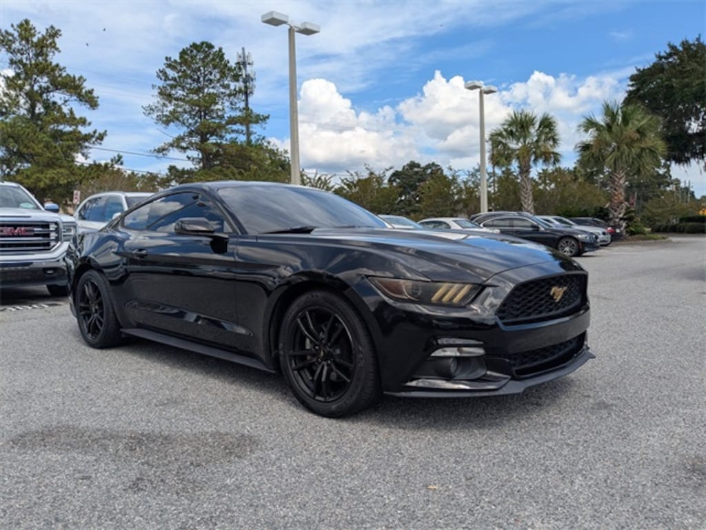 Black 2015 Ford Mustang EcoBoost Premium RWD 6-Speed Automatic with Select-Shift EcoBoost 2.3L I4 GTDi DOHC Turbocharged VCT USB PORTS, BLUETOOTH, Equipment Group 200A, Navigation System, SYNC w/MyFord Touch, Voice Activated Navigation.