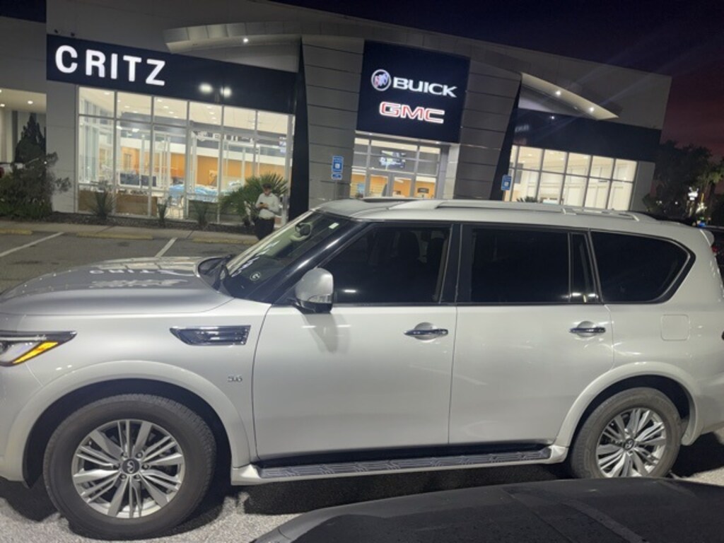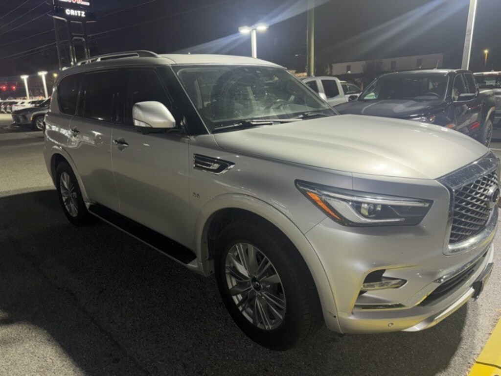 Clean CARFAX. Recent Arrival! Liquid Platinum 2019 INFINITI QX80 LUXE RWD 7-Speed Automatic 5.6L V8 APPLE CAR PLAY, ANDROID AUTO, USB PORTS, BLUETOOTH, Illuminated entry, Navigation system: INFINITI InTouch Navigation, Wheels: 20" x 8.0" Aluminum-Alloy.