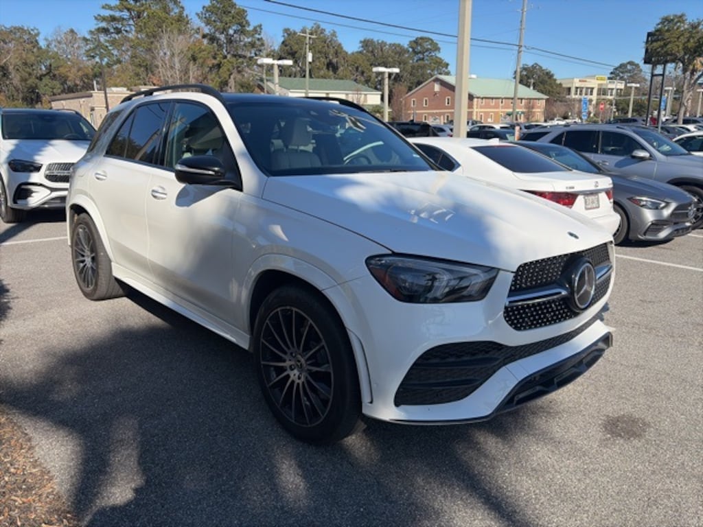 Clean CARFAX. CARFAX One-Owner. Recent Arrival! White 2021 Mercedes-Benz GLE 350 4MATIC® 4MATIC® 4MATIC® 9-Speed Automatic 2.0L I4 Turbocharged APPLE CAR PLAY, ANDROID AUTO, USB PORTS, BLUETOOTH, 115V Power Outlet, Active Blind Spot Assist, Active Brake Assist w/Cross-Traffic Function, Active Distance Assist DISTRONIC®, Active Emergency Stop Assist, Active Lane Change Assist, Active Lane Keeping Assist, Active Speed Limit Assist, Active Steering Assist, Active Stop & Go Assist, Adaptive Highbeam Assist, Alloy wheels, AMG® Bodystyling, AMG® Line Exterior, AMG® Line Exterior (P31), Burmester® Surround Sound System, Driver Assistance Package Plus, Driving Assistance Plus, Evasive Steering Assist, Exterior Lighting Package, LED Intelligent Light System, Navigation system: MBUX, Night Package, Night Package Code, Parking Assist Code, PRE-SAFE® PLUS Rear Collision Protection, Premium Package, Route-Based Speed Adaptation, Traffic Sign Assist, Wheels: 21" AMG® Multispoke.
